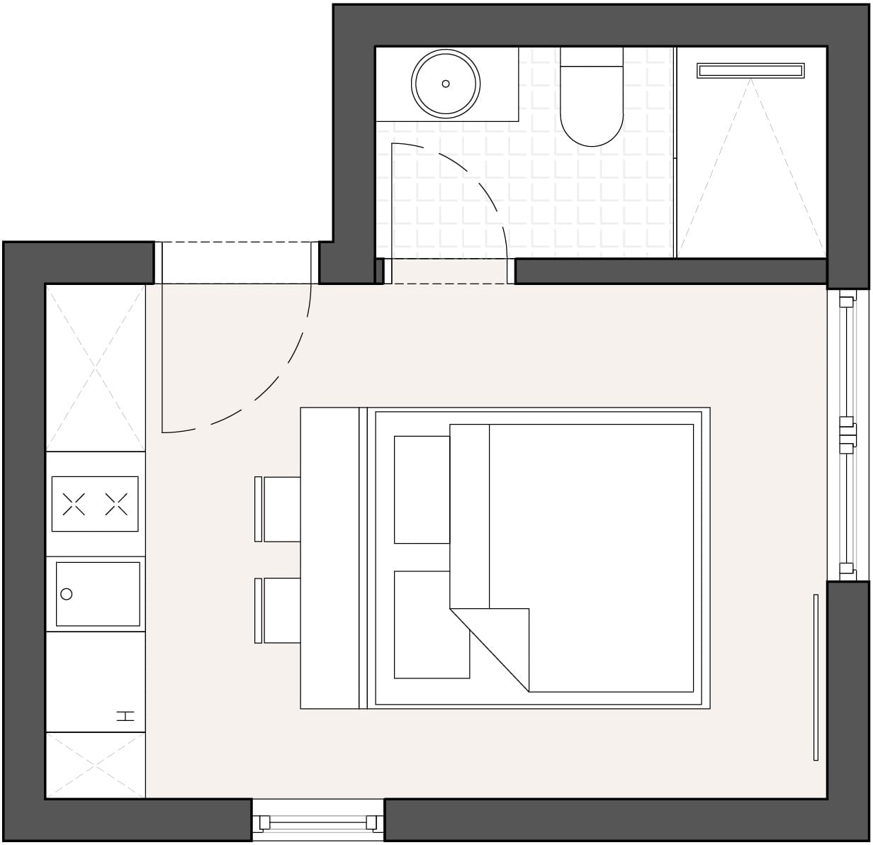 This 20 m² Classic Studio is awell-organized retreat designed for couples or business travelers. With smartuse of space, it combines functionality and comfort in a modern, contemporarystyle. Large windows bring in natural light, while elegant décor with warmtones and stylish details creates a cozy yet refined atmosphere.