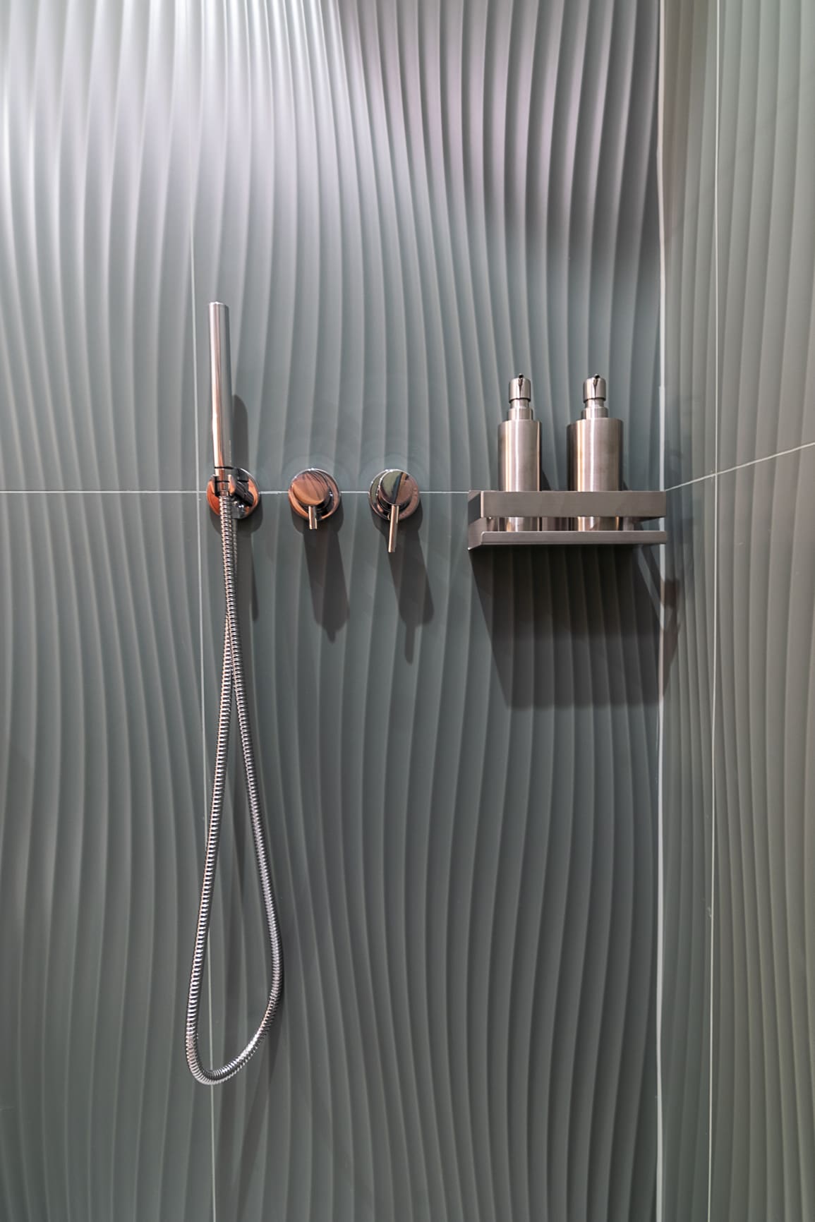 The bathroom features elegant tile finishesand a spacious walk-in shower with a modern rainfall system. A designer sink,hair dryer, fresh towels, and complimentary toiletries add to the comfort.